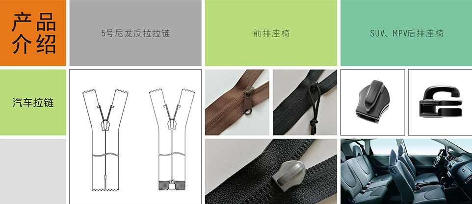 我們提供汽車專用拉鏈、標識扣、標識嘜、粘扣帶/刺毛帶,織帶/松緊帶,塑料扣件等其他汽車內(nèi)飾、汽車座椅系統(tǒng)部件。